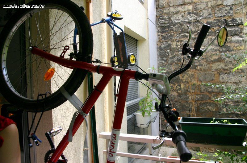 Donc je rentre mes vélos dans mon appartement, deux tiennent dans le balcon, un dans le couloir de l'appart et le pliant dans le salon. Le principal inconvénient, une fois qu'on a accepté l'idée de vivre au plus près de son vélo, reste