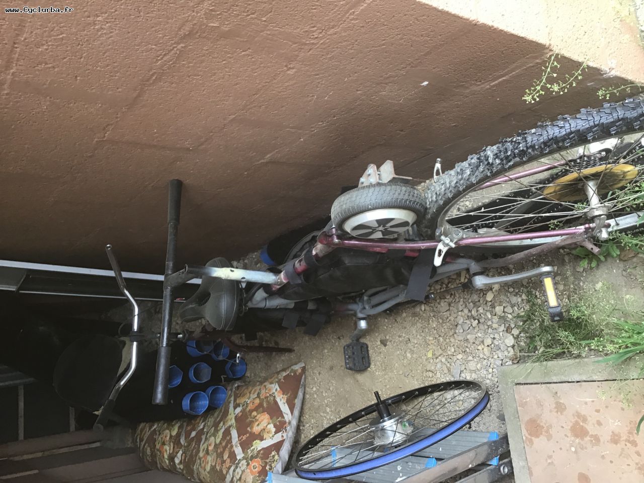 Pour les premiers essais avant de passer sur le tandem j'utilise mon VTT déjà électrique de la roue AV