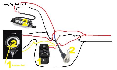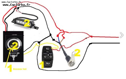 Je vous ai fait le schéma de mon éclairage sur ma trott ce sera plus clair, voilà: