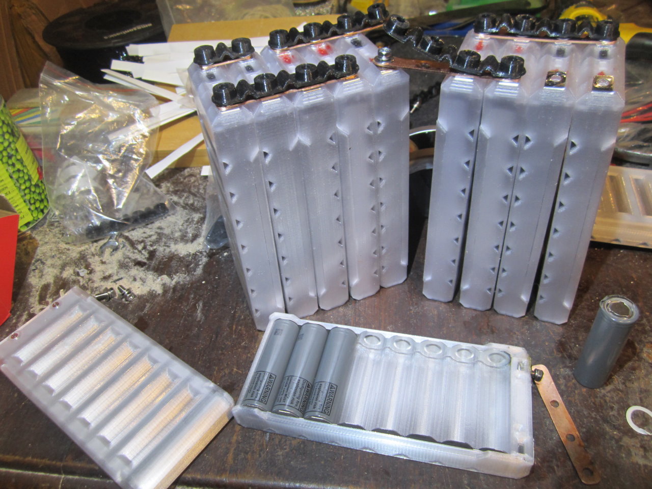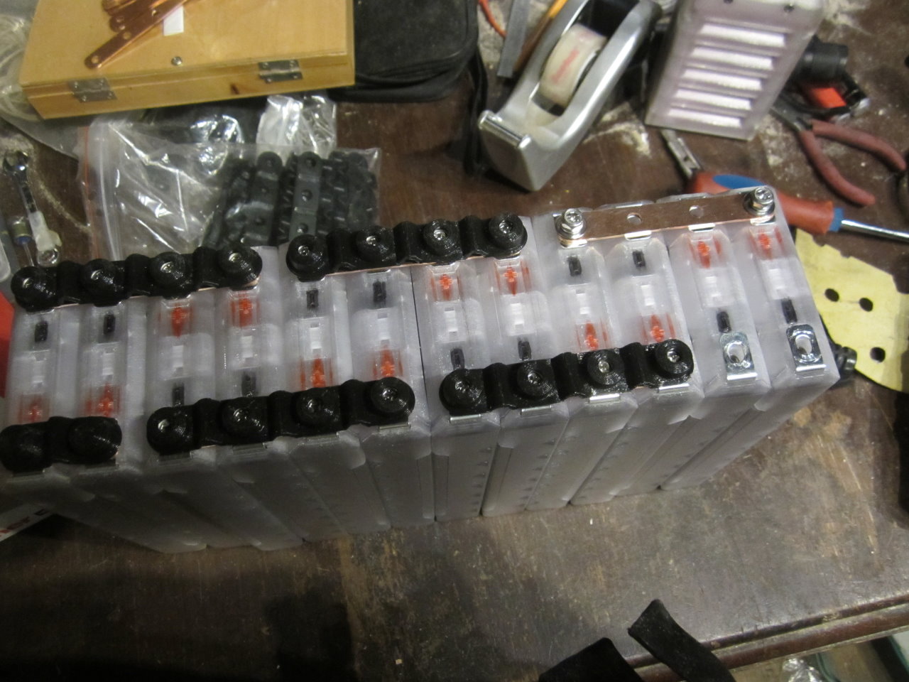 A première vue, les 8 accus neufs court circuités en parallèle n'ont débité "que" 20-25 ampères chacun durant une poignée de secondes (pour une limite à 15A pic dans la datasheet), ce qui ne les as dégradés que de manière négligeable. Leur voltage n'a pas bougé depuis l'accident (y compris pour celui qui a le plus chauffé et perdu sa rondelle isolante), ce qui est bon signe.